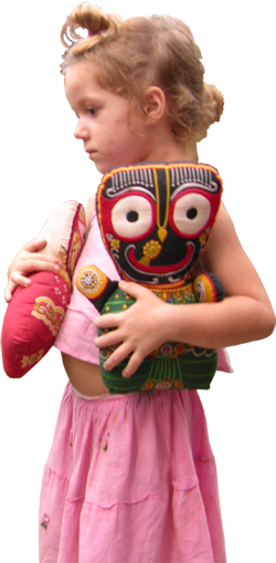 Even while playing with Jagannatha, Baladeva, and Subhadra your child will awaken his love and devotion to Them. As we learn from Srila Prabhupada's example: